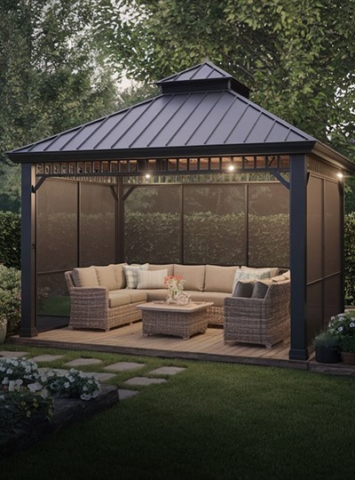 Enhance your outdoor space with a modern gazebo, designed for style, comfort, and durability.